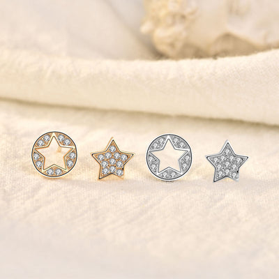 Asymmetry CZ Stars New 925 Sterling Silver Stud Earrings