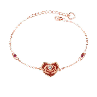 Beautiful Red CZ Rose Gold 925 Sterling Silver Bracelet