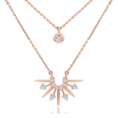 New CZ Sunrise Sunshine Double Layer 925 Sterling Silver Necklace
