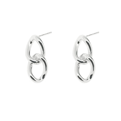 Casual Twist Double Loop 925 Sterling Silver Dangling Earrings