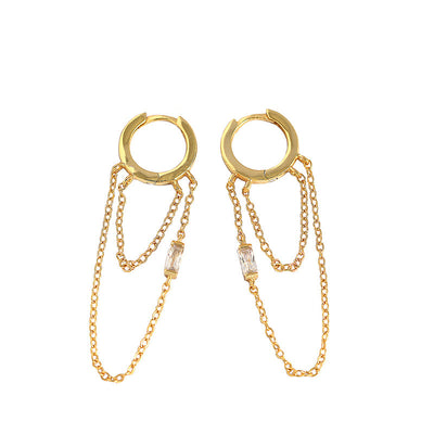 Elegant CZ Chain 925 Sterling Silver Dangling Earrings