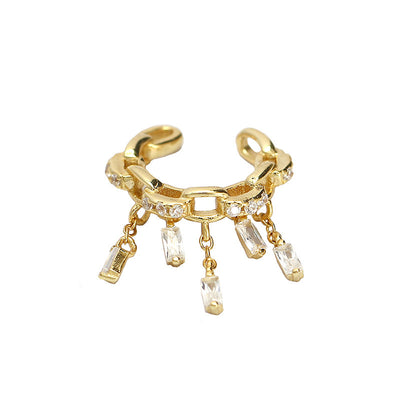 Fashion CZ Hollow Chain Tassels 925 Sterling Silver Non-Pierced Earring(Single)