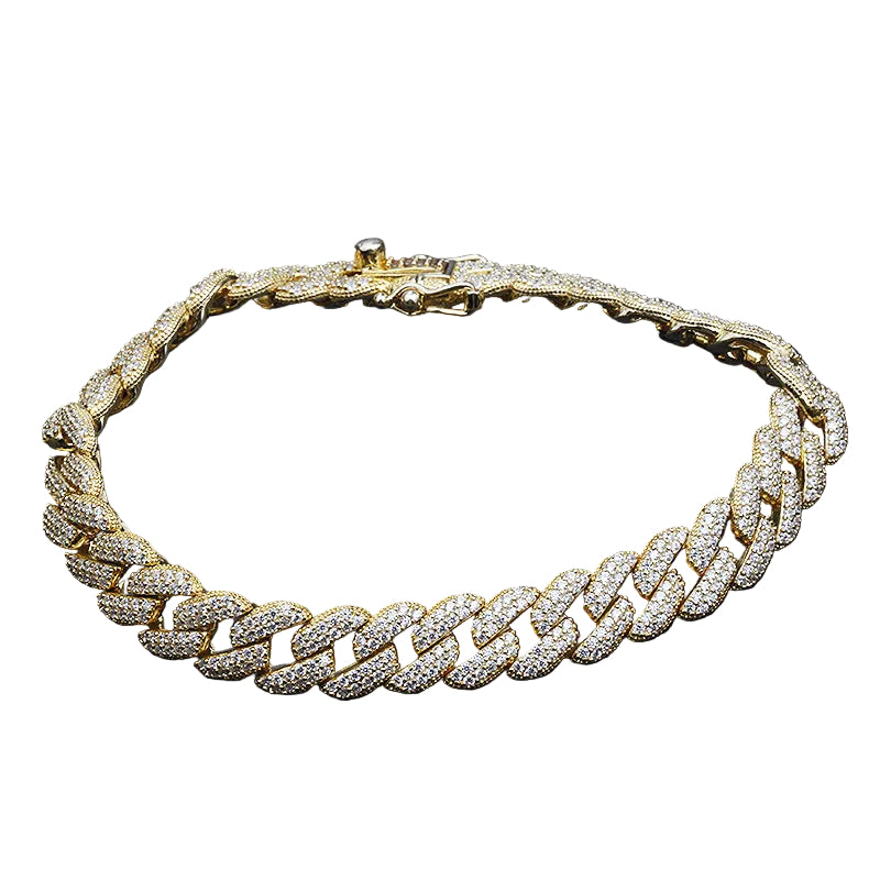 Premium Iced Out Cuban Link Bracelet - 925 Sterling Silver with 18K Gold Plating
