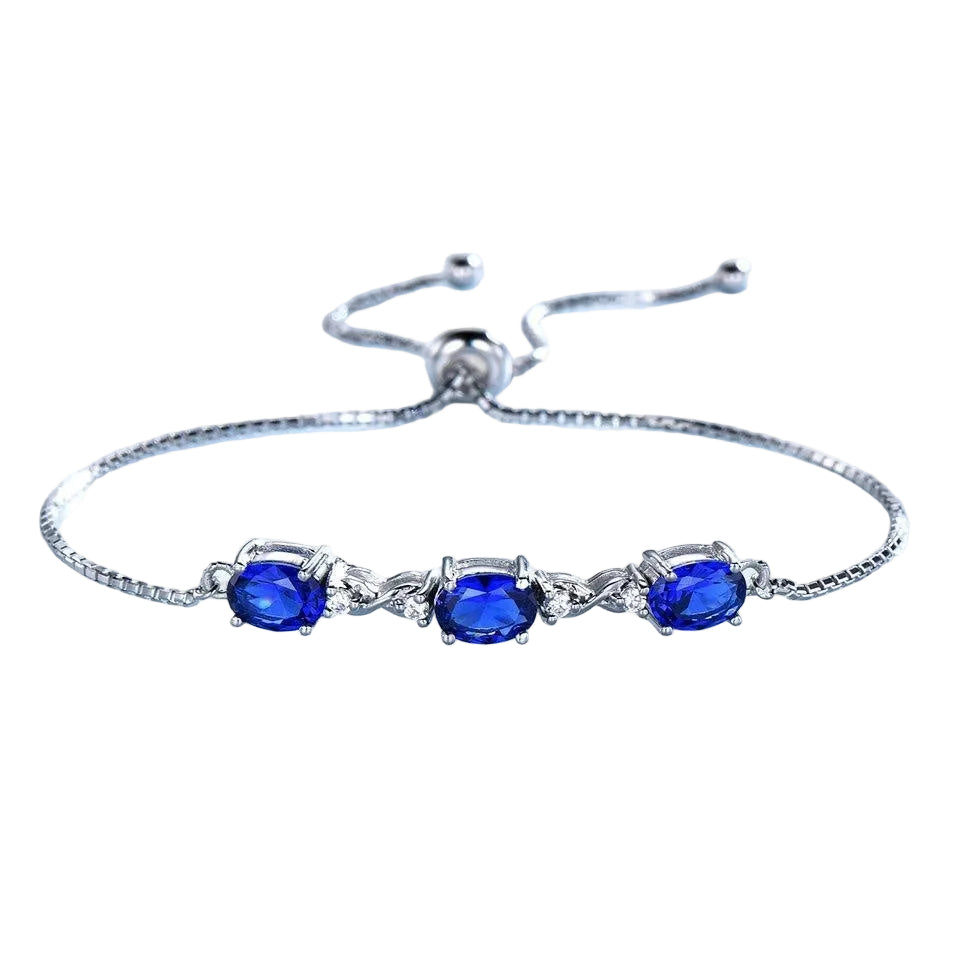 Blue Crystal Adjustable Bracelet - 925 Sterling Silver