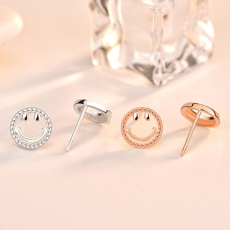 Cute Mini Smile Face 925 Sterling Silver Stud Earrings