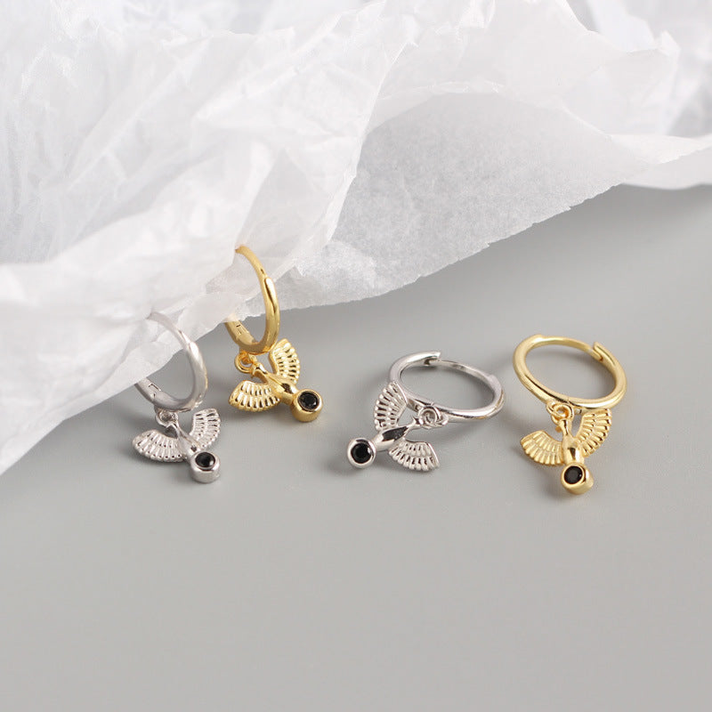 Hot Sale CZ Flying Peace Dove 925 Sterling Silver Drop Dangling Earrings