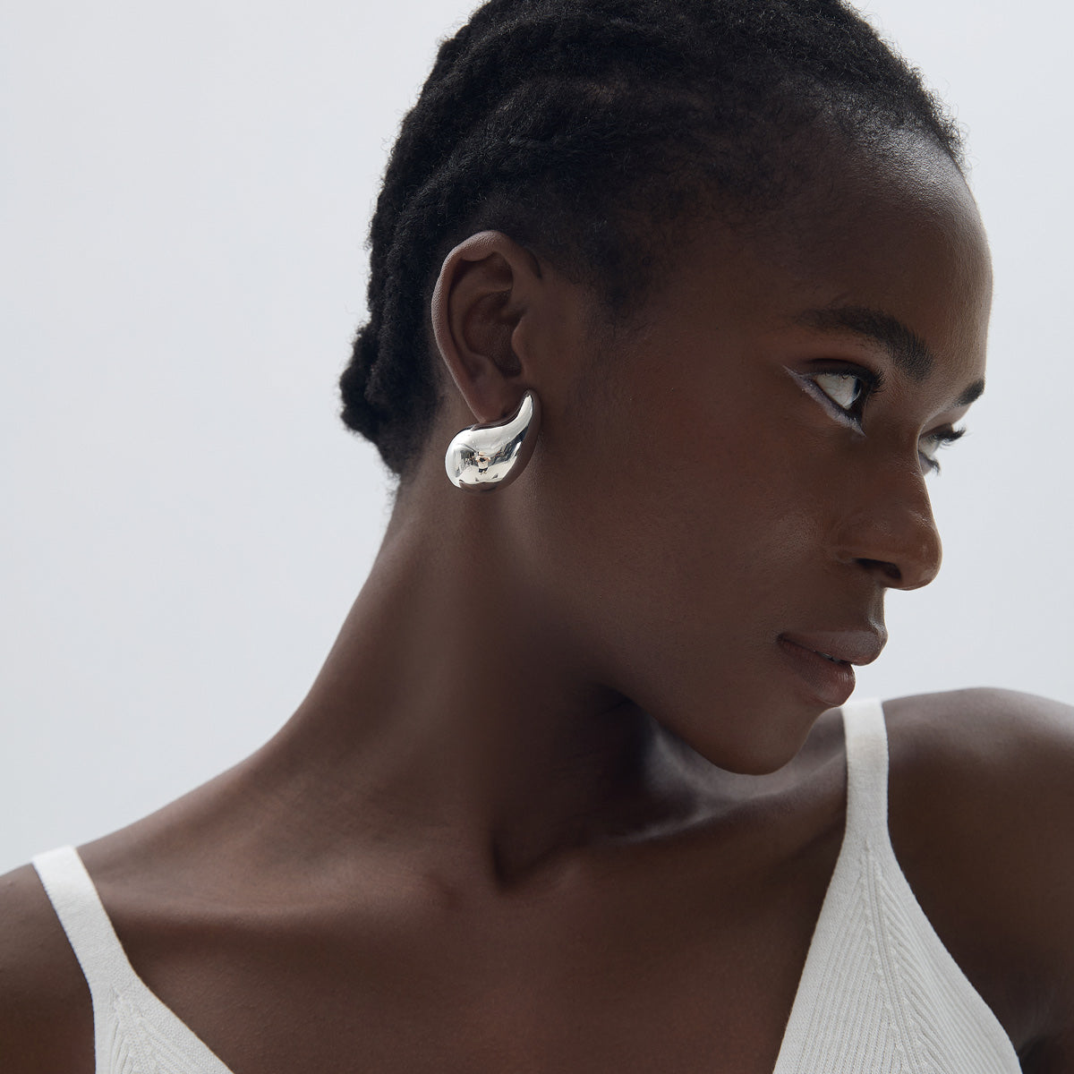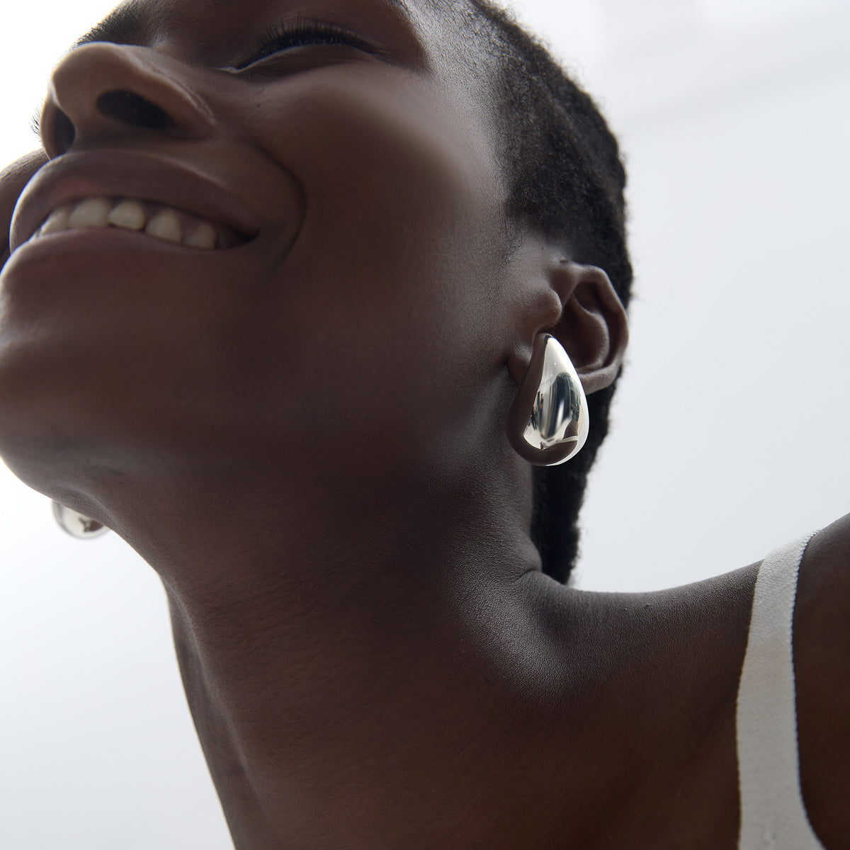 Party Large Drop Water S999 Sterling Silver Electroforming Stud Earrings