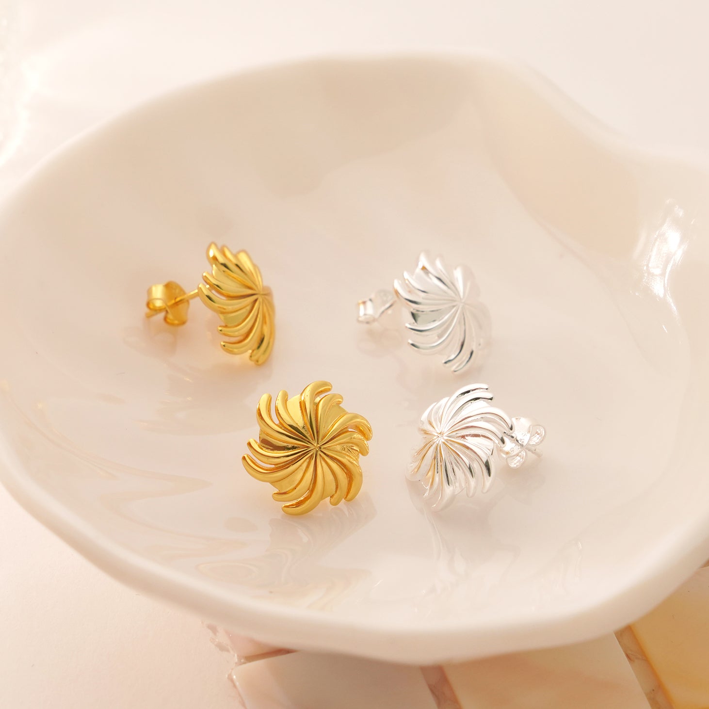 Sunny Spiral Flower 925 Sterling Silver Stud Earrings