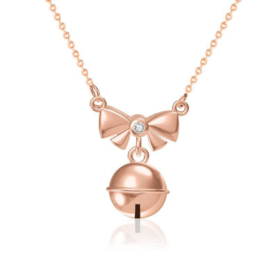 Girl CZ Bowknot Bell 925 Sterling Silver Necklace