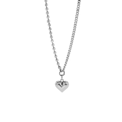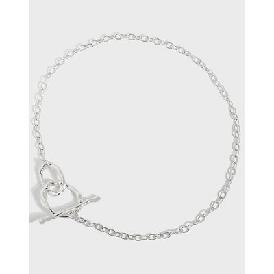 Vintage Asymmetry Chain Love Heart 925 Sterling Silver Necklace