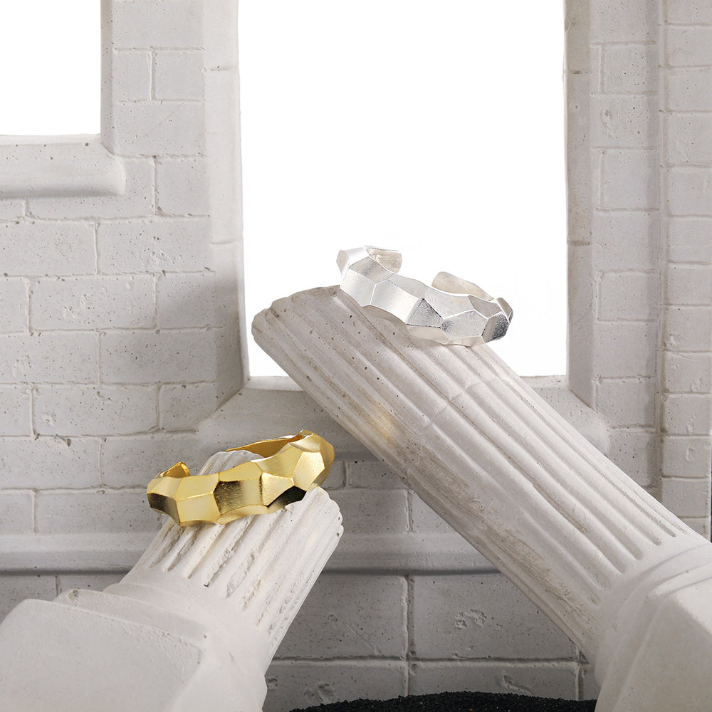 • Textured Surfaces - Our hammered and carved rings catch light beautifully