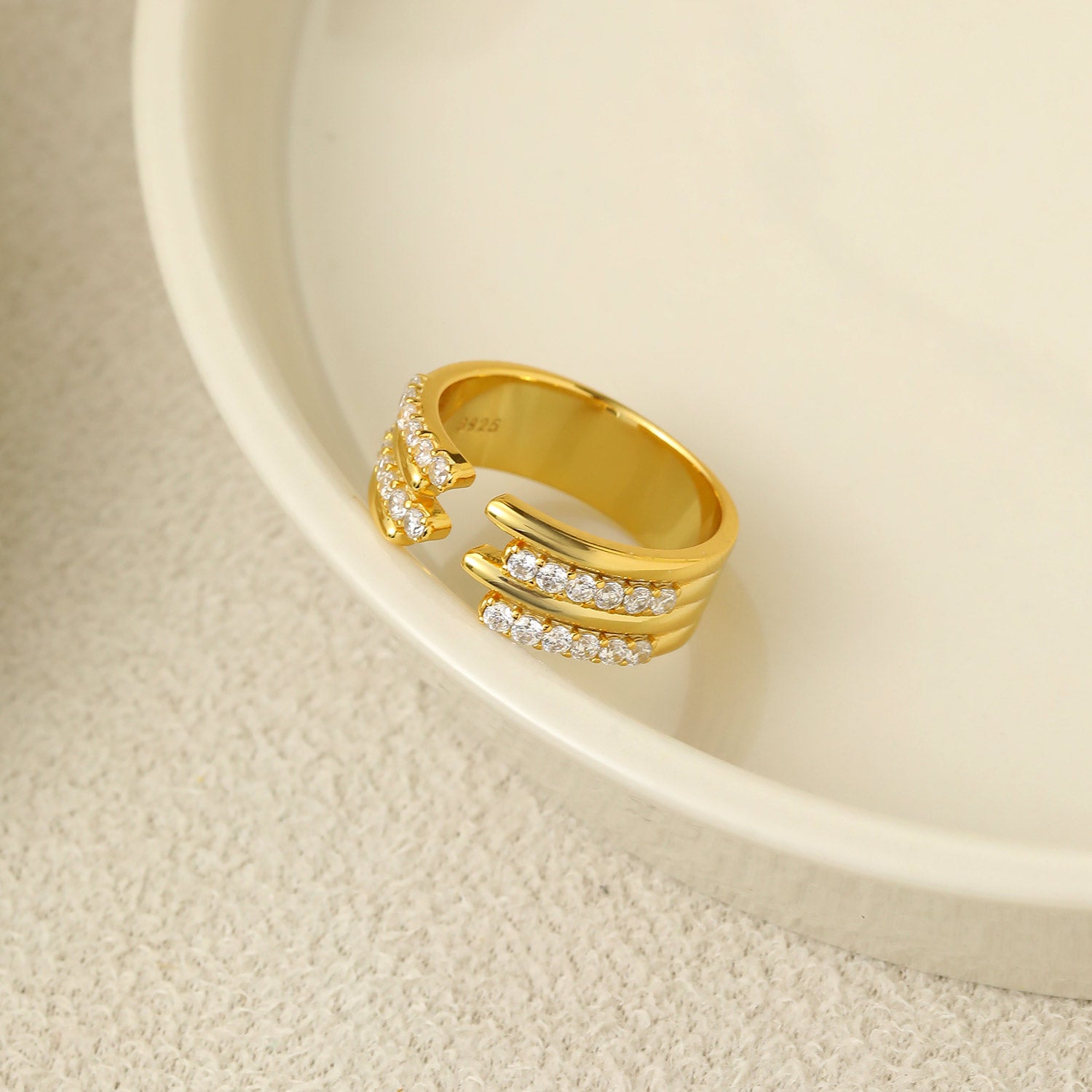 Fashion CZ  Jagged Geometry 925 Sterling Silver Adjustable Ring