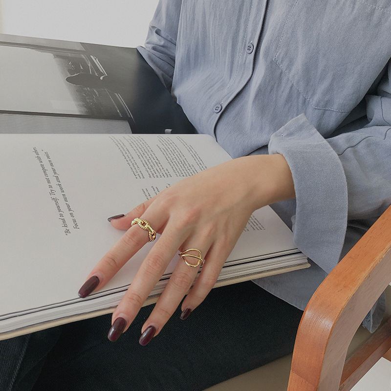Fashion Twisted Hollow Chain 925 Sterling Silver Adjustable Ring