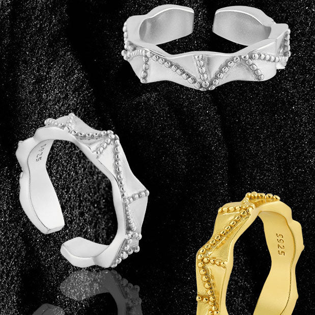 Graduation Beads Pattern Wave 925 Sterling Silver Adjustable Ring