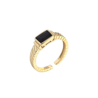 Elegant Black CZ Baguette Geometry 925 Sterling Silver Adjustable Ring