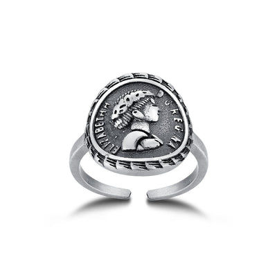 Vintage Elizabeth Portrait 925 Sterling Silver Adjustable Signet Ring