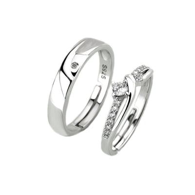 Wedding Fall in Love CZ 925 Sterling Silver Adjustable Promise Ring