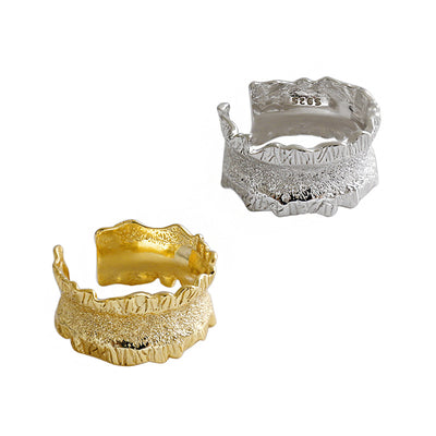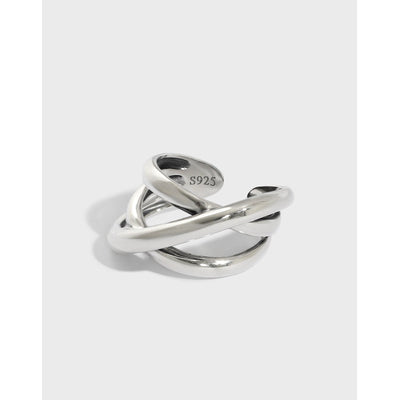Fashion Irregular Lines Cross Wide 925 Sterling Silver Adjustable Ring