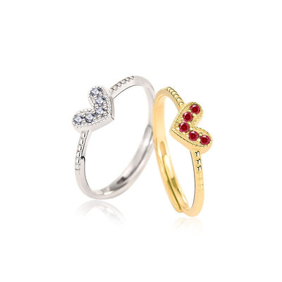 Women Irregular CZ Heart 925 Sterling Silver Adjustable Ring