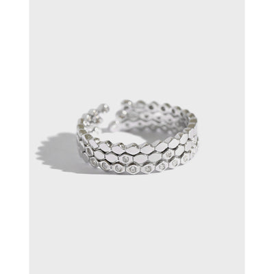Fashion Three CZ Hive 925 Sterling Silver Adjustable Stacker Ring