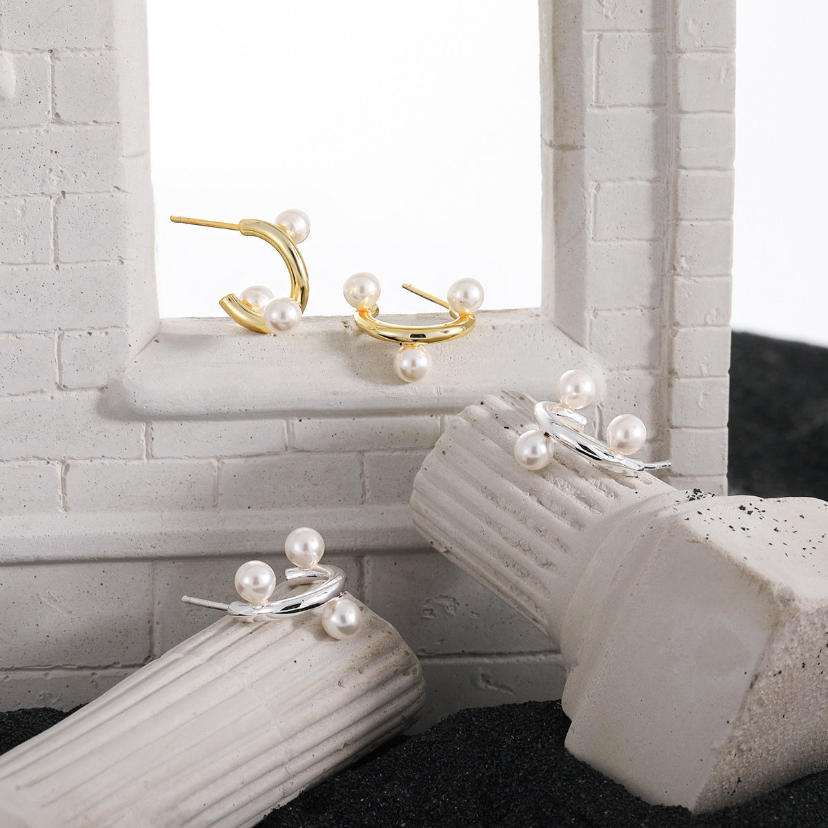 Fashion Office Round Shell Pearls C Shape 925 Sterling Silver Hoop Earrings