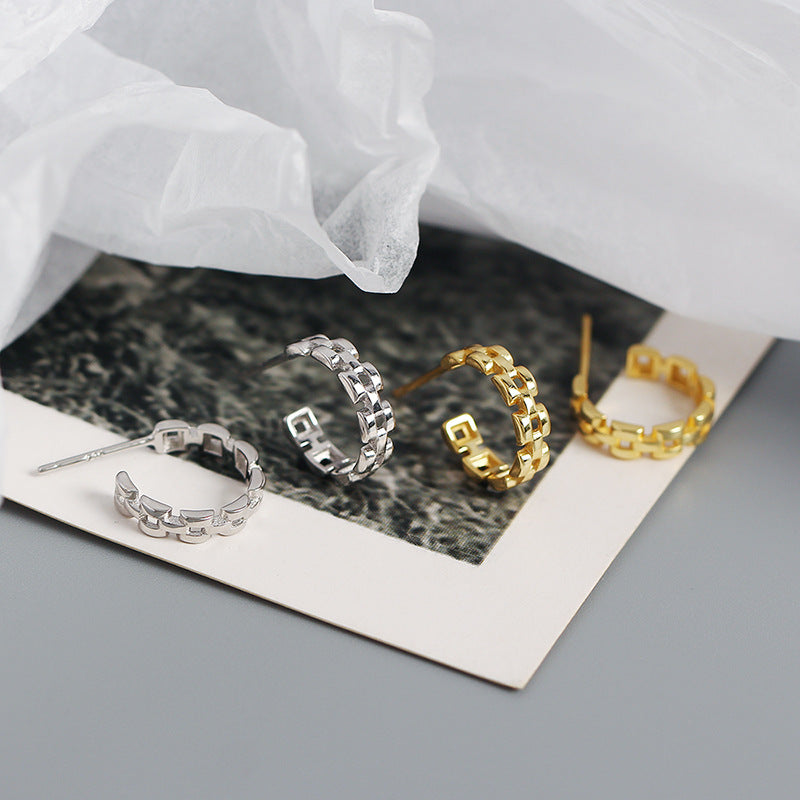 Fashion Watchband C Shape 925 Sterling Silver Stud Earrings