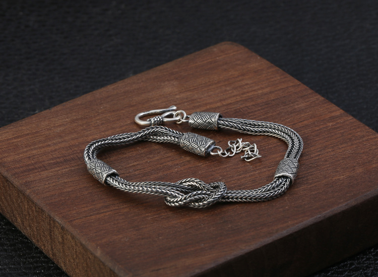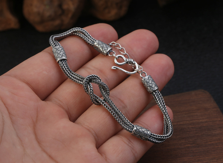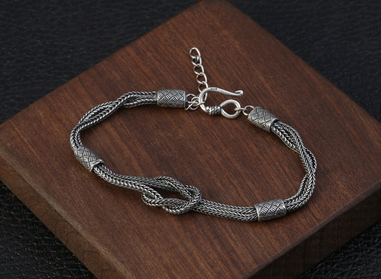 The slender 4mm width makes this perfect for both men and women who appreciate refined, meaningful jewelry. The oxidized finish highlights the intricate weaving detail and gives the bracelet vintage character. A timeless piece that transcends trends and carries deep symbolic meaning.